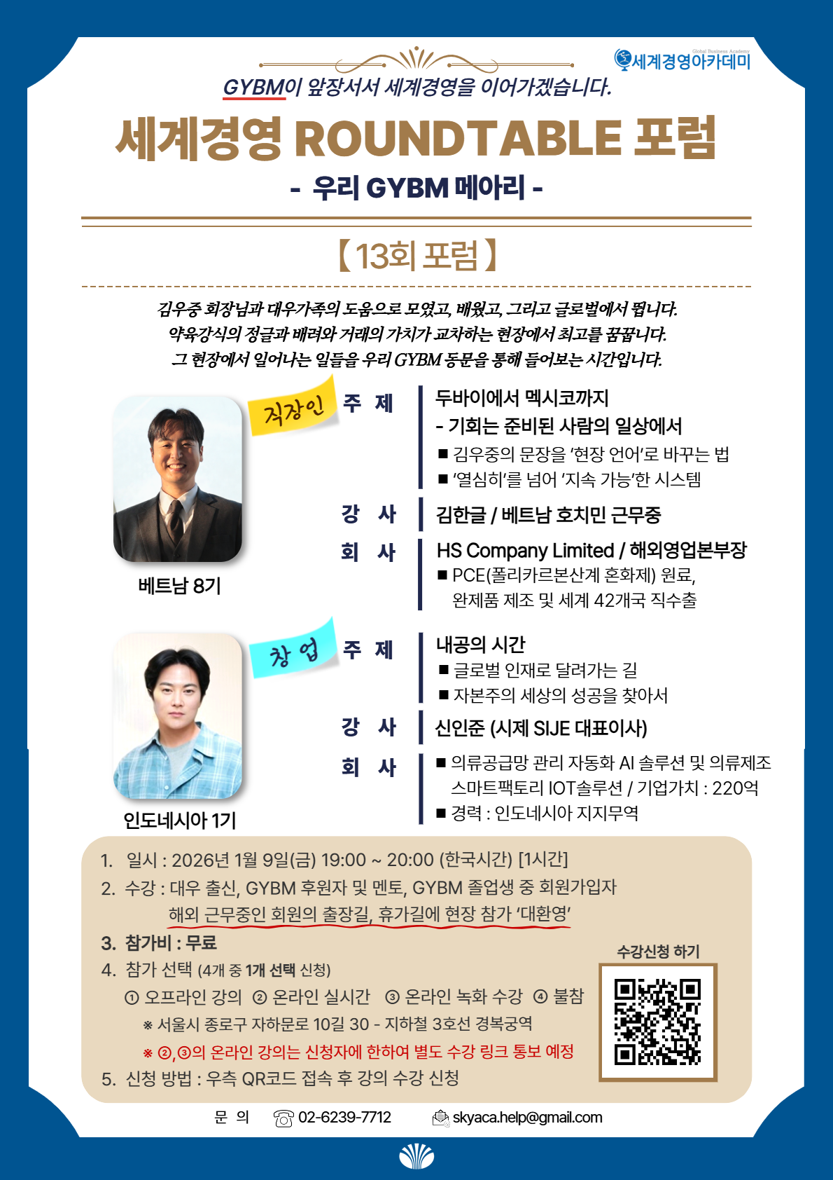 - 장소 : GYBM Platform (대우재단빌딩 5층) / 유튜브 실시간 송출
