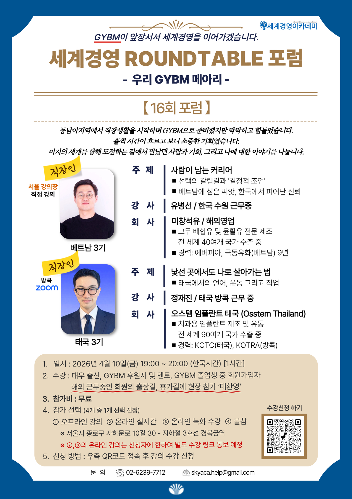 - 장소 : GYBM Platform (대우재단빌딩 5층) / 유튜브 실시간 송출