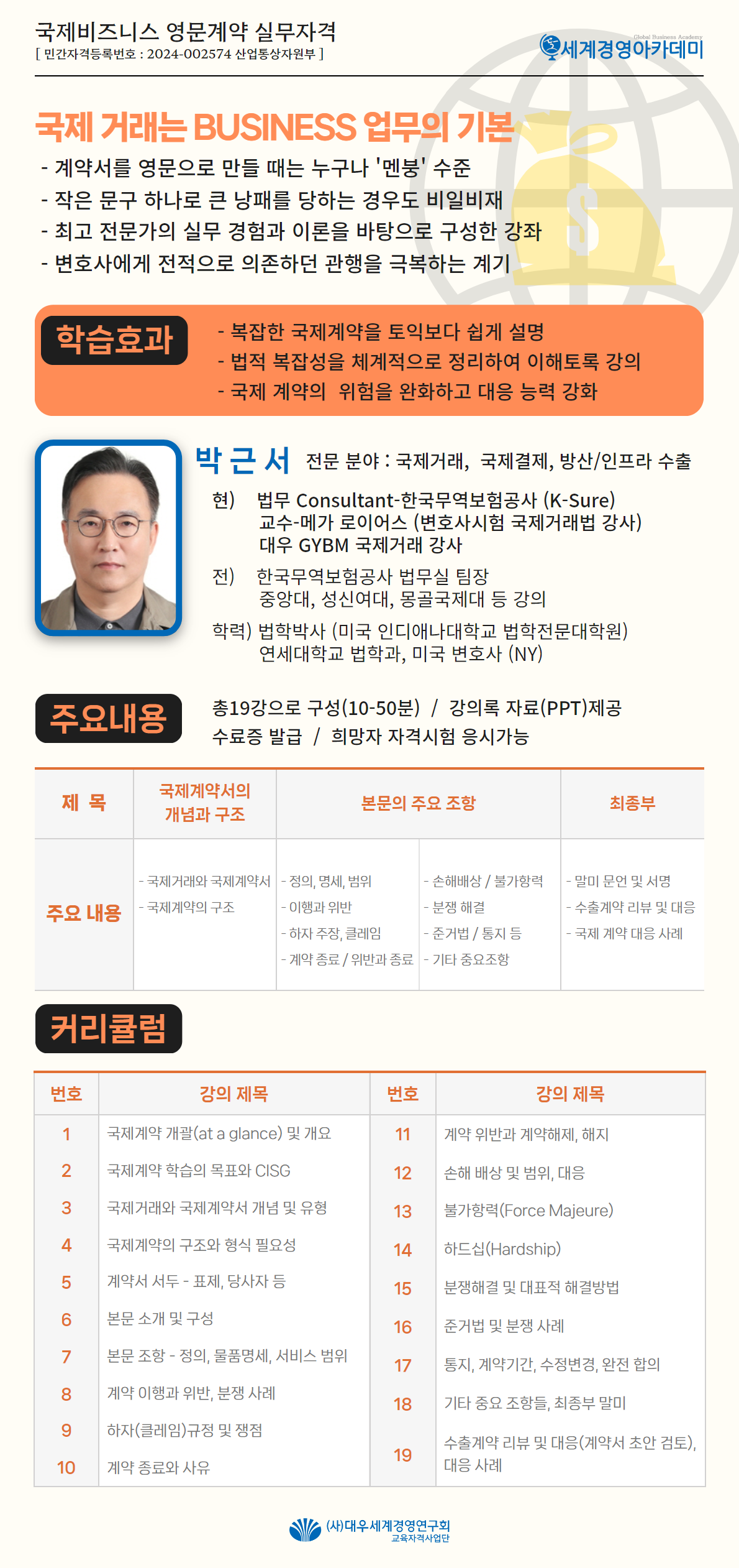 o 영문 국제계약을 구조적인 측면에서 파악 가능 o 계약상 실제 활용되는 주요 조항 학습 가능
